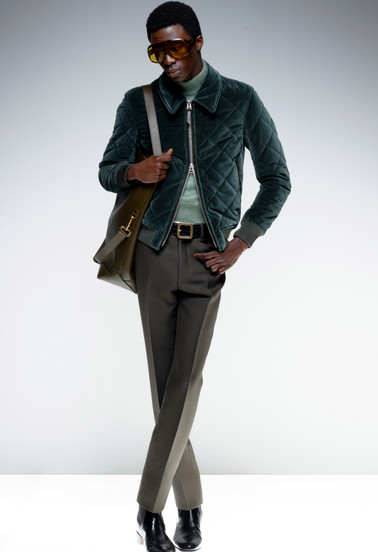 He urged men to get dressed again, too, but not black tie. Rather, Ford referenced the attitude of ‘60s dressy-casual (Sam Cooke came to mind seeing the trim pants and loafers, maybe because I just saw the terrific “One Night in Miami”) and ‘80s punk (Paul Simonon of the The Clash with his rebel gaze and glossy leather jackets was on the designer’s mood board).